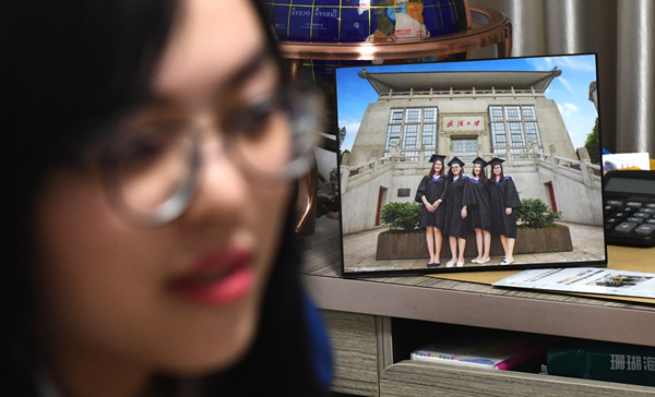 林柔婷的桌上擺著武漢大學(xué)本科畢業(yè)的紀(jì)念照。(新華社記者 程敏 攝)