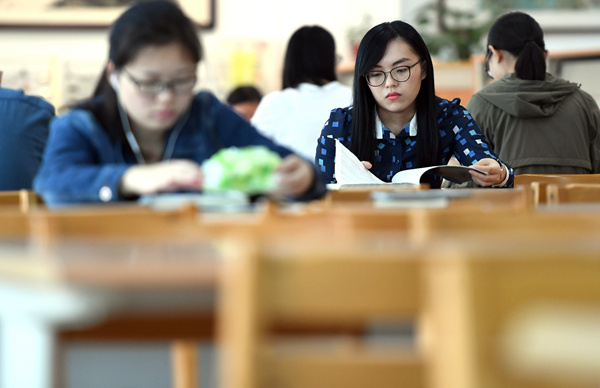 林柔婷在武漢大學(xué)準(zhǔn)備研究生考試。(新華社記者 程敏 攝)