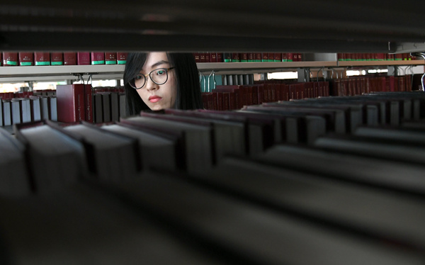 5月2日,林柔婷在武漢大學(xué)法學(xué)院圖書(shū)館查閱資料。(新華社記者 程敏 攝)