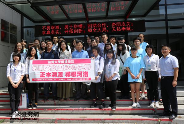 河南省臺辦組織的“正本溯源·尋根河洛”臺灣未來媒體人河南創(chuàng)作交流之旅活動(dòng)來到鄭州大學(xué)。(中國臺灣網(wǎng) 黃露佳 攝)