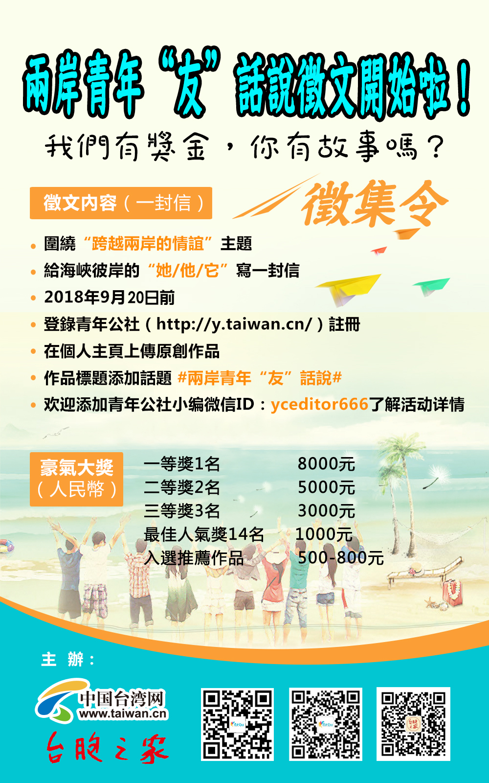 4.投稿過程中遇到問題請聯(lián)系青年公社小編,微信(ID:yceditor666),備注參加兩岸青年“友”話說征文活動(dòng)。