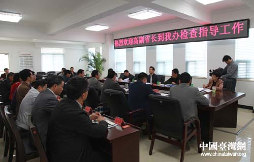 高樹勛仔細(xì)察看了云南省臺辦的辦公環(huán)境,深入到每個(gè)處室,每一間辦公室,與干部職工親切交淡,了解各處室的工作職責(zé),開展工作的情況。聽取了省臺辦主任李極明的工作匯報(bào)。