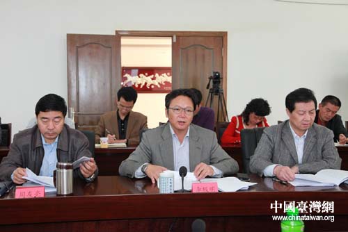 云南省臺辦主任李極明(中)匯報(bào)云南對臺工作情況。(云南省臺辦 李仁興 攝)
