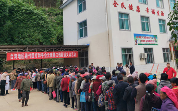 臺(tái)灣路竹醫(yī)療和平會(huì)為墨江民眾義診,并為基層醫(yī)務(wù)人員進(jìn)行業(yè)務(wù)培訓(xùn)。圖為排著長(zhǎng)隊(duì)等候診療服務(wù)的民眾