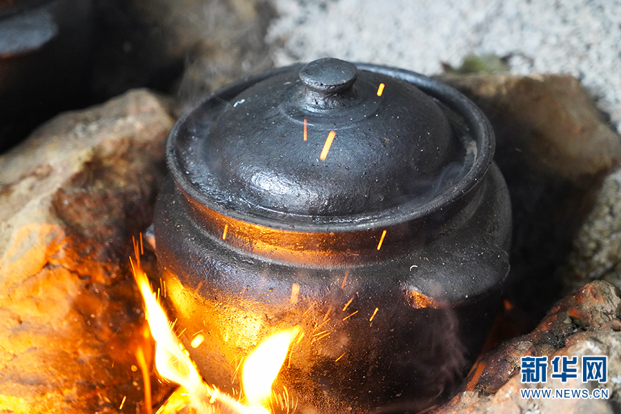熱氣騰騰的土罐燉土雞(2020年12月30日攝)。新華網(wǎng)發(fā)(李丹 攝)