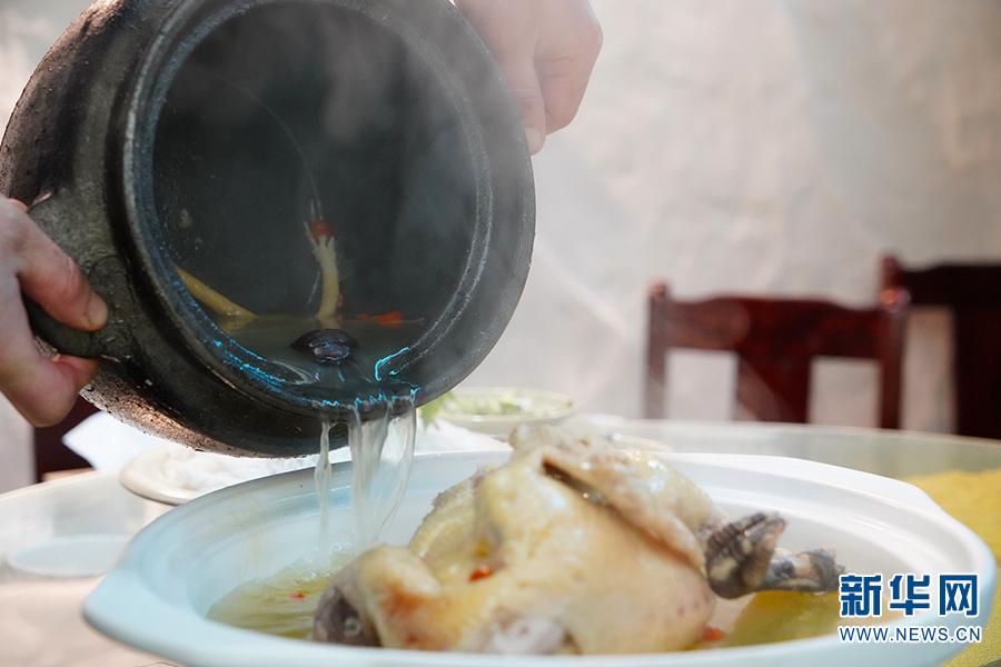 讓人垂涎欲滴的土罐燉土雞(2020年12月30日攝)。新華網(wǎng)發(fā)(李丹 攝)
