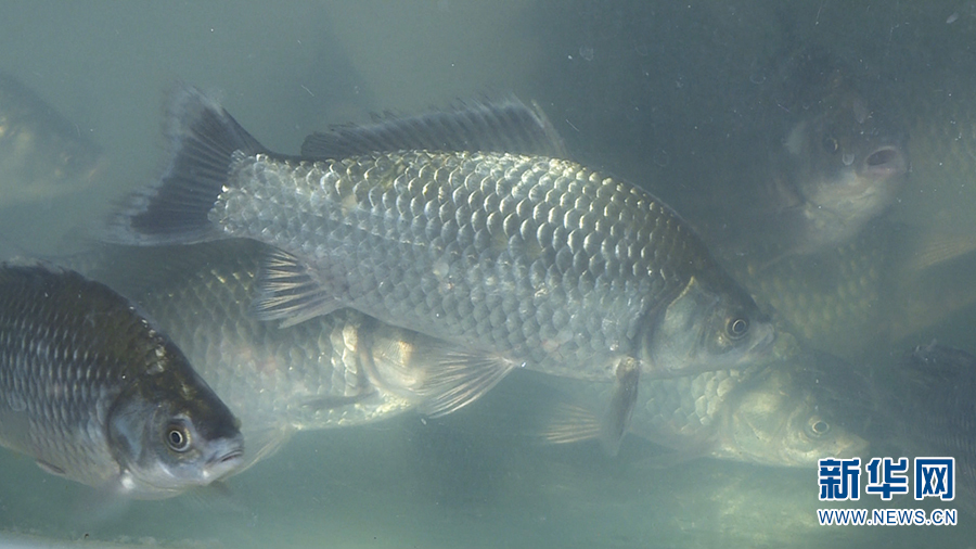 星云湖周邊生態(tài)養(yǎng)殖的鯽魚(2020年12月25日攝)。新華網(wǎng)發(fā)(張菲菲 攝)