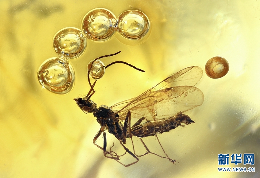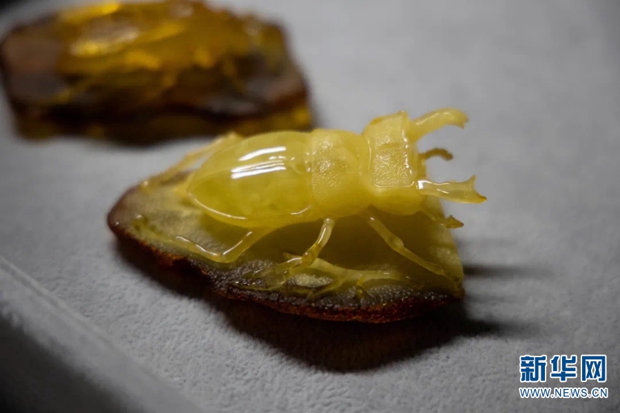 《琥珀——波蘭民族文化之魂》展出的蟲珀。新華網(wǎng)發(fā)(云南省博物館供圖)