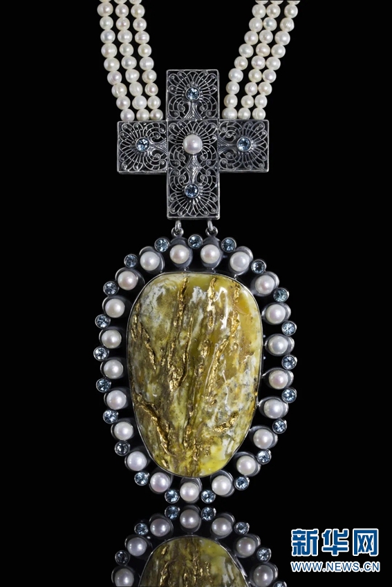 《琥珀——波蘭民族文化之魂》展出的珠寶。新華網(wǎng)發(fā)(云南省博物館供圖)