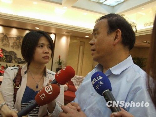 資料圖:5月24日下午,浙江省省長呂祖善會(huì)見由13家媒體組成的臺(tái)灣媒體聯(lián)合采訪團(tuán)。圖為會(huì)見后臺(tái)灣媒體仍然不愿錯(cuò)過機(jī)會(huì),繼續(xù)追問。 中新社發(fā) 李飛云 攝