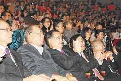 演出完畢后,國(guó)民黨榮譽(yù)主席連戰(zhàn)、臺(tái)當(dāng)局“行政院長(zhǎng)”吳敦義夫婦、國(guó)民黨副主席林豐正、南投縣長(zhǎng)李朝卿、“立委”郭素春等人親自到后臺(tái),向團(tuán)長(zhǎng)茅威濤等演員及導(dǎo)演郭曉男致意,吳敦義盛贊“詞曲動(dòng)人,精彩至極,看完還想再看一次!