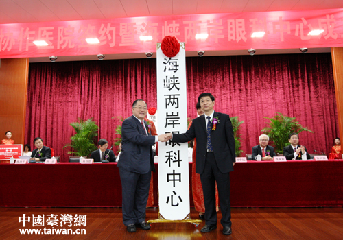 一是“海峽兩岸眼科中心”在舟山醫(yī)院正式掛牌。經過一年的試運行,臺灣雙眼明眼科醫(yī)院與舟山醫(yī)院聯合成立的“海峽兩岸眼科中心”,正式舉行了掛牌儀式,臺灣雙眼明眼科醫(yī)院院長何一滔和舟山醫(yī)院院長張永奎分別為中心臺灣方和舟山方主任,臺灣方面將安排每月1次、1-2名眼科專家來“海峽兩岸眼科中心”進行坐診手術。