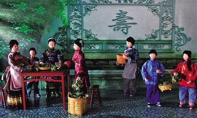 琦君紀(jì)念館里收藏的我市藝術(shù)家綢塑作品,生動再現(xiàn)了琦君筆下的溫州端午風(fēng)俗。季天淵攝