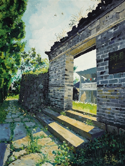 畫家麥浪的“故園”畫展上,展出了多幅琦君故里的油畫,這是琦君故居的舊門臺。