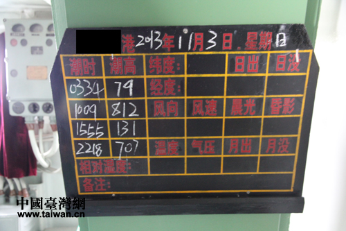 艙內(nèi)顯要位置記錄著每日潮汐信息。(中國臺灣網(wǎng) 馬迪 攝)