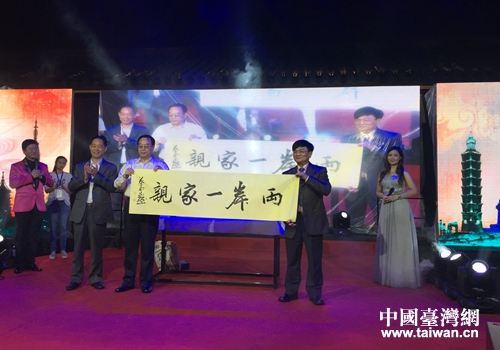 匯聚兩岸文化與特色的歌舞、詩朗誦、特色樂器等精彩節(jié)目也一一上演:詩歌朗誦《富春山居圖》、《西湖詩集》、《鄉(xiāng)愁》等節(jié)目讓人情思涌動;臺灣少數民族歌手帶來的《外婆的澎湖灣》充滿寶島風情;兩岸青年歌手演唱的《人間西湖》、《故鄉(xiāng)的云》、《城里的月光》、《站在高崗上》等風靡兩岸、膾炙人口的經典歌曲和《梁!返亩葑嗟裙(jié)目也贏得了在場觀眾的陣陣掌聲;著名書法家蔡云超先生即席揮毫潑墨,寫下了“兩岸一家親”的真情墨寶,并由市政協(xié)主席葉明現場贈送給臺商協(xié)會會長劉光榮先生。