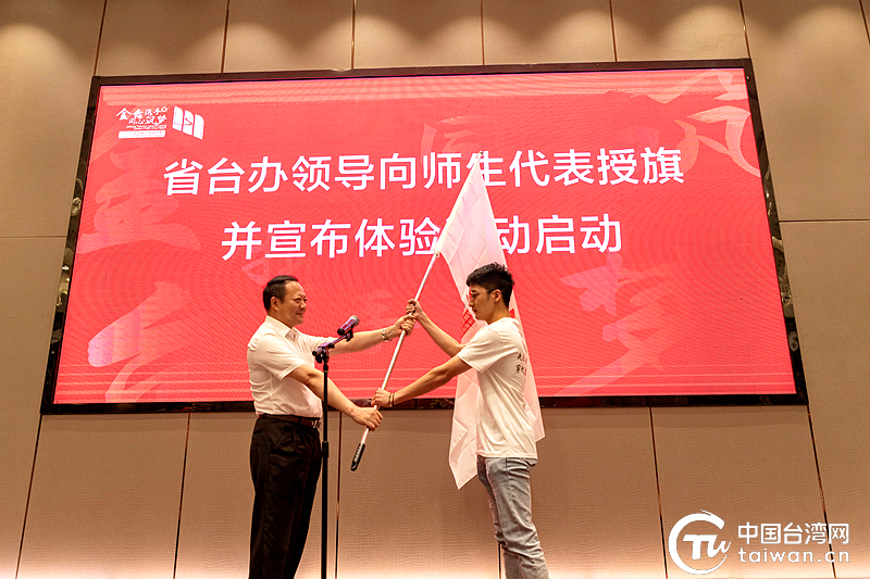 浙江省臺(tái)辦副主任章啟忠向師生代表授旗,并宣布體驗(yàn)活動(dòng)正式啟動(dòng)。(中國臺(tái)灣網(wǎng) 發(fā))