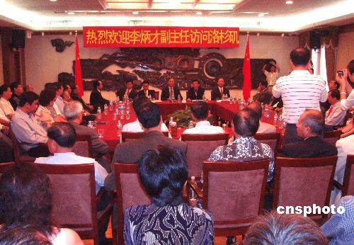中新社洛杉磯七月二十三日電 (記者 賈國榮) 美國洛杉磯當(dāng)?shù)貎S領(lǐng)和臺灣同胞代表今日參加了由海協(xié)常務(wù)副會長李炳才率團(tuán)在中國駐洛杉磯總領(lǐng)館舉辦的座談會。