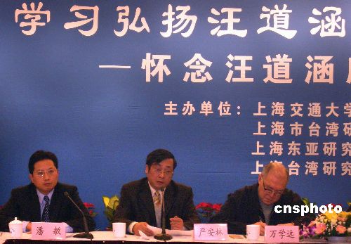 一年前的十二月二十四日,海協(xié)會會長汪道涵在上海逝世。十二月二十二日,大陸各界人士聚會汪老母校上海交通大學(xué),舉行“懷念汪道涵”座談會。來自上海東亞研究所、上海臺灣研究所等機(jī)構(gòu)的學(xué)者發(fā)言,汪道涵親屬汪靜夫婦等與會。 中新社發(fā) 許曉青 攝