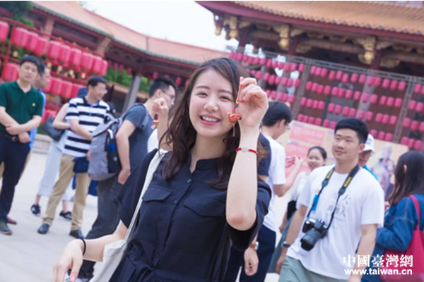 “畫檐慧聚寺,情絲憶臺灣”。此次活動中,學(xué)生們還參觀了由慧聚寺、慧聚文化廣場、兩岸(媽祖)文化交流中心、媽祖文化主題公園以及臺灣風(fēng)情街五大部分組成的匯聚廣場。學(xué)生藺嘉瑩感嘆:“這里實在是太親切了,鄉(xiāng)音、媽祖廟、還有各種具有臺灣特色的建筑,感覺像是回到了家一樣。在這里只瞧見了‘一家’沒瞧見‘兩岸’。”