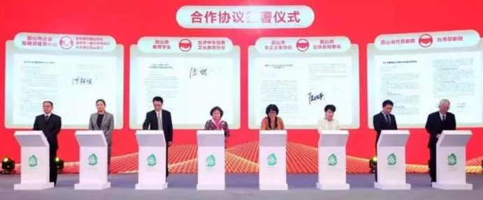 ▲圖為在昆山市貫徹落實(shí)《關(guān)于促進(jìn)兩岸經(jīng)濟(jì)文化交流合作的若干措施》工作推進(jìn)會上,昆山當(dāng)代昆劇院與臺灣昆劇團(tuán)簽訂合作協(xié)議。右一:臺灣昆劇團(tuán)團(tuán)長洪惟助教授;右二:昆山當(dāng)代昆劇院總經(jīng)理張克明。