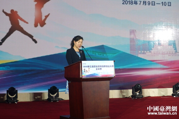 北京市臺辦副主任于鳳英在頒獎典禮上致辭。(中國臺灣網(wǎng) 張玲 攝)