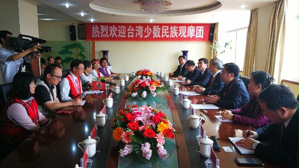云南省文山壯族苗族自治州州委書記及相關(guān)負(fù)責(zé)人和臺(tái)灣少數(shù)民族觀摩團(tuán)開(kāi)展座談交流。(圖片來(lái)源:國(guó)家民委網(wǎng)站)