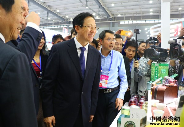 農(nóng)業(yè)農(nóng)村部部長韓長賦視察了海峽農(nóng)業(yè)合作展區(qū)。(中國臺(tái)灣網(wǎng) 郜利敏 攝)