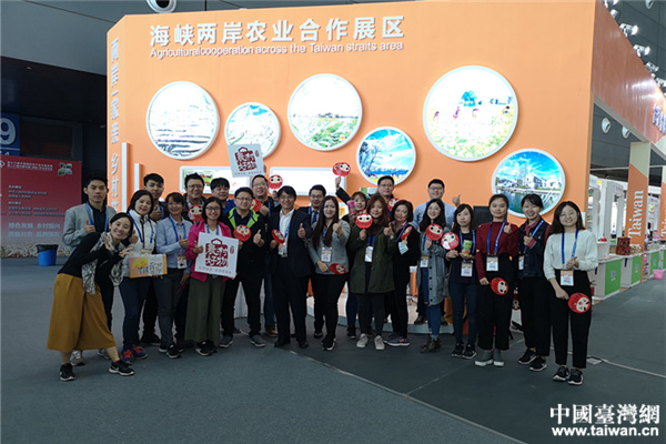 參展的16家島內(nèi)企業(yè)在海峽兩岸農(nóng)業(yè)合作展區(qū)合影,點贊農(nóng)交會平臺。(中國臺灣網(wǎng) 郜利敏 攝)