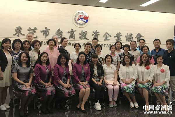 中華木蘭婦女交流協(xié)會與東莞市臺協(xié)婦聯(lián)會、東莞市臺聯(lián)儷雅會在東莞臺商協(xié)會合照。(圖片來源:東莞市臺辦)