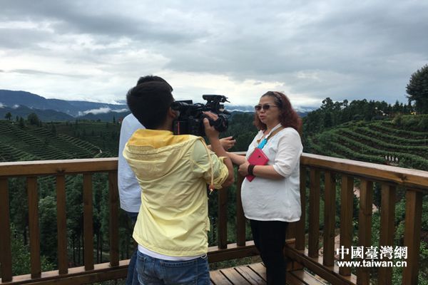 臺灣民意代表廖國棟服務(wù)處副主任王秋蘭接受媒體采訪 (圖片來源:四川省臺辦)
