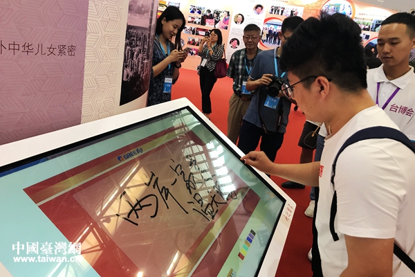 北京聯(lián)合大學(xué)研究生溫天鵬觀展后留言“兩岸一家親”。(中國(guó)臺(tái)灣網(wǎng) 趙苗青 攝)