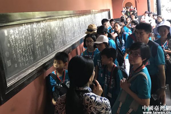 武侯祠《出師表》前聽講解。(圖片來(lái)源:成都市臺(tái)辦)