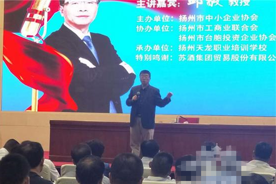 中國臺灣網(wǎng)7月30日揚州訊 28日,臺灣中國文化大學教授邱毅先生赴揚州,講授“新時代中國經(jīng)濟新戰(zhàn)略,企業(yè)如何趁勢崛起”專題講座。揚州市近千名中小企業(yè)家、臺商代表等參加講座,了解當今世界的最新宏觀經(jīng)濟形勢,為企業(yè)創(chuàng)新發(fā)展提供戰(zhàn)略思維支持。揚州市臺辦、市中小企業(yè)局等部門領導聆聽講座。