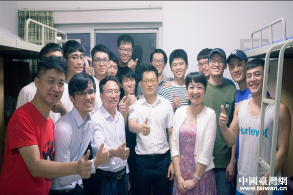 中國臺灣網(wǎng)7月31日廣州訊 7月19日晚,廣東省廣州市天河區(qū)委常委謝偉帶隊前往暨南大學宿舍慰問參加“兩岸一家親·天河夢工場”2018年臺灣大學生實習營活動的臺灣大學生,了解同學們的實習和生活情況。暨南大學海外聯(lián)誼會秘書長莊漢文、區(qū)臺辦主任袁曉文、廣州臺青之家工作人員等陪同慰問。