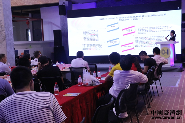 交流會(huì)上,福州市臺(tái)辦經(jīng)濟(jì)處副處長徐嫻從適用對(duì)象、適用范圍和政策內(nèi)容三個(gè)方面,向大家講解“66條實(shí)施意見”。福州市臺(tái)辦經(jīng)濟(jì)處處長黃海森對(duì)臺(tái)灣青創(chuàng)工作進(jìn)行了總結(jié)。他表示,近幾年福州對(duì)需要幫助的臺(tái)灣創(chuàng)業(yè)青年進(jìn)行了“政策支持和精準(zhǔn)扶持,”接下來將繼續(xù)鼓勵(lì)臺(tái)灣青年來榕創(chuàng)業(yè)。