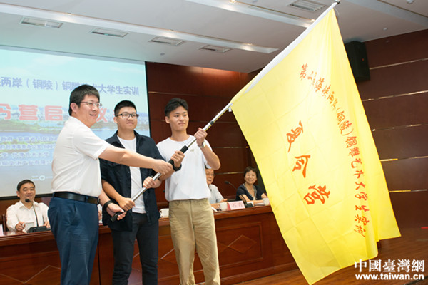 中國(guó)臺(tái)灣網(wǎng)8月23日銅陵訊 8月21日上午,第二屆海峽兩岸(銅陵)銅雕藝術(shù)大學(xué)生實(shí)訓(xùn)夏令營(yíng)在安徽省銅陵市啟動(dòng),并舉行銅臺(tái)兩地五所高校大學(xué)生見(jiàn)面會(huì)。省臺(tái)辦副主任蘇青,市領(lǐng)導(dǎo)單向前、葉萍、洪維助,銅陵職業(yè)技術(shù)學(xué)院書(shū)記李業(yè)群等參加啟動(dòng)儀式。市委副書(shū)記、市委統(tǒng)戰(zhàn)部部長(zhǎng)單向前為夏令營(yíng)授旗。