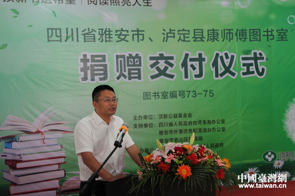 頂新公益基金會理事長滕鴻年在“康師傅圖書室”交付儀式上致辭。(圖片來源:四川省臺辦)