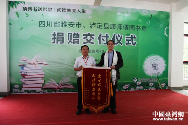 瀘定二中向頂新公益基金會贈送錦旗。(圖片來源:四川省臺辦)