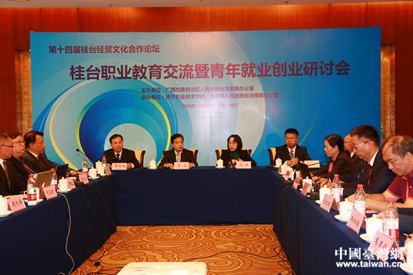 桂臺職業(yè)教育交流暨青年就業(yè)創(chuàng)業(yè)研討會在南寧舉行。(圖片來源:廣西臺辦)