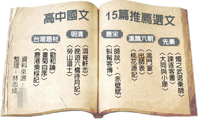 據(jù)臺灣《中國時報》報道,在10月15日的“課審大會”中,研修小組提出15篇推薦選文,“課審委員”對其中的《臺灣通史序》、《諫逐客書》及《鴻門宴》等多篇文章均有意見,因此決定昨天再討論一次,最后僅《臺灣通史序》被舍棄。