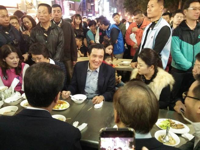 馬英九跨年夜到六合夜巿吃海產(chǎn)粥。(圖片來源:臺灣《中時電子報》)