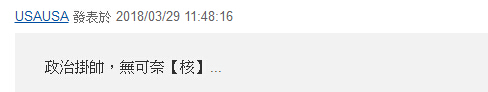 重啟核電的消息一經傳出便引發(fā)陣陣漣漪。臺灣網友憤怒表示,“說好的用愛發(fā)電呢”、“打臉打的啪啪作響”、“當年打著‘我是人我反核’的這些人過幾天重啟核電還是人嗎?”