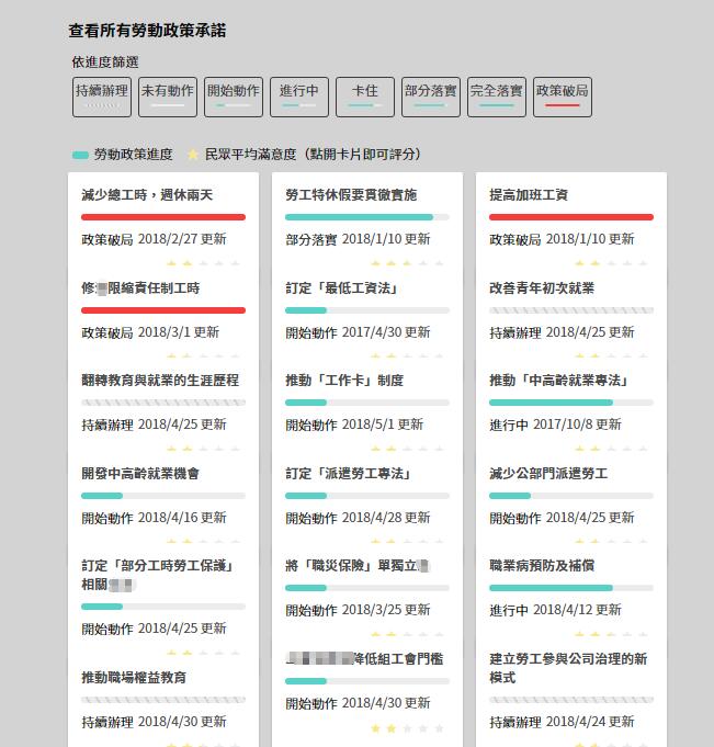 島內(nèi)非營利網(wǎng)媒《報導(dǎo)者》為此特意制作了“蔡英文勞動政策追蹤大平臺”,結(jié)果顯示,截至勞動節(jié)當天,不僅“完全落實”的為0項,更有3項“政策破局”到已然跳票,而唯一“部分落實”的僅是“勞工特休假要貫徹實施”……