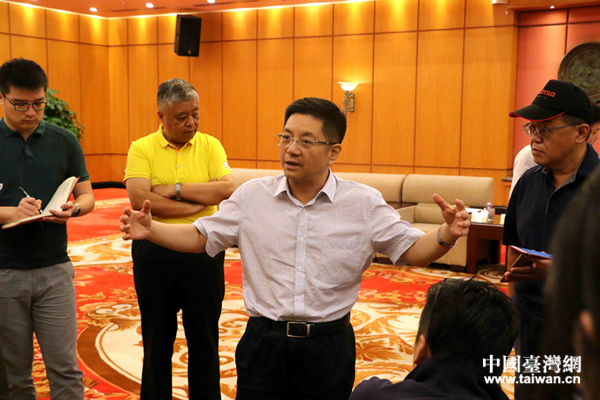 “海峽兩岸記者特區(qū)行”采訪團(tuán)團(tuán)長(zhǎng)、國(guó)務(wù)院臺(tái)灣事務(wù)辦公室新聞局局長(zhǎng)馬曉光接受兩岸記者采訪。(中國(guó)臺(tái)灣網(wǎng) 尹賽楠 攝)