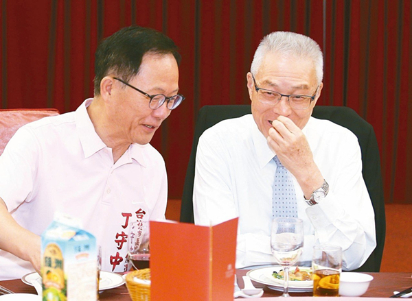國民黨主席吳敦義(右)昨跟臺北市長參選人丁守中與里長們餐敘。(圖片來源:臺灣《聯(lián)合報》)