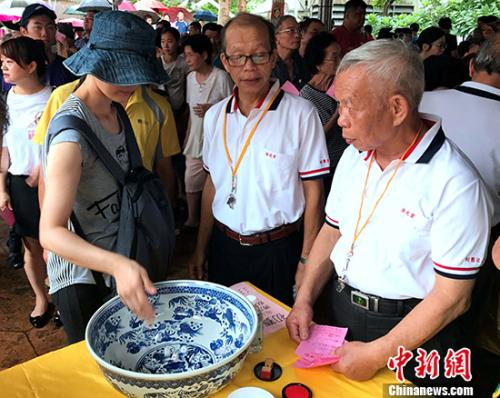 9月24日一早,一場(chǎng)中秋博餅比賽在臺(tái)北葫蘆堵海光宮前舉行,一張張木桌中間擺上大瓷碗,參與的人們相繼擲出骰子,期待“中狀元”。這一從福建傳入、于臺(tái)灣離島及中南部地區(qū)盛行的趣味競(jìng)賽,據(jù)傳來(lái)自鄭成功當(dāng)年收復(fù)臺(tái)灣后,部將為安撫福建一帶士兵思鄉(xiāng)之情,設(shè)立的一項(xiàng)中秋活動(dòng)。
