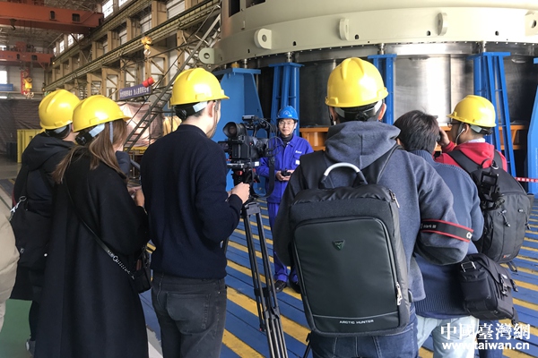 兩岸媒體人在哈爾濱電機(jī)廠采訪相關(guān)負(fù)責(zé)人。(中國(guó)臺(tái)灣網(wǎng) 張亞靜 攝)