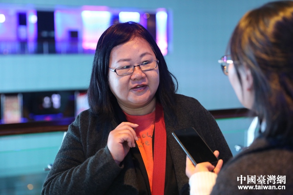 《臺(tái)灣導(dǎo)報(bào)》記者蔡淑娟接受采訪。(中國(guó)臺(tái)灣網(wǎng) 李奕均 攝)
