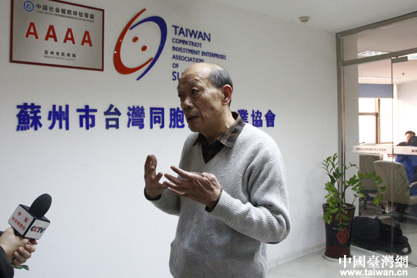蘇州市臺(tái)商法律顧問(wèn)團(tuán)團(tuán)長(zhǎng)朱偉接受記者采訪。(中國(guó)臺(tái)灣網(wǎng) 王怡然 攝)